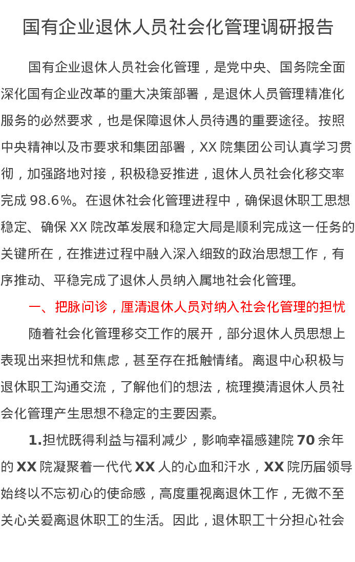国有企业退休人员社会化管理调研报告