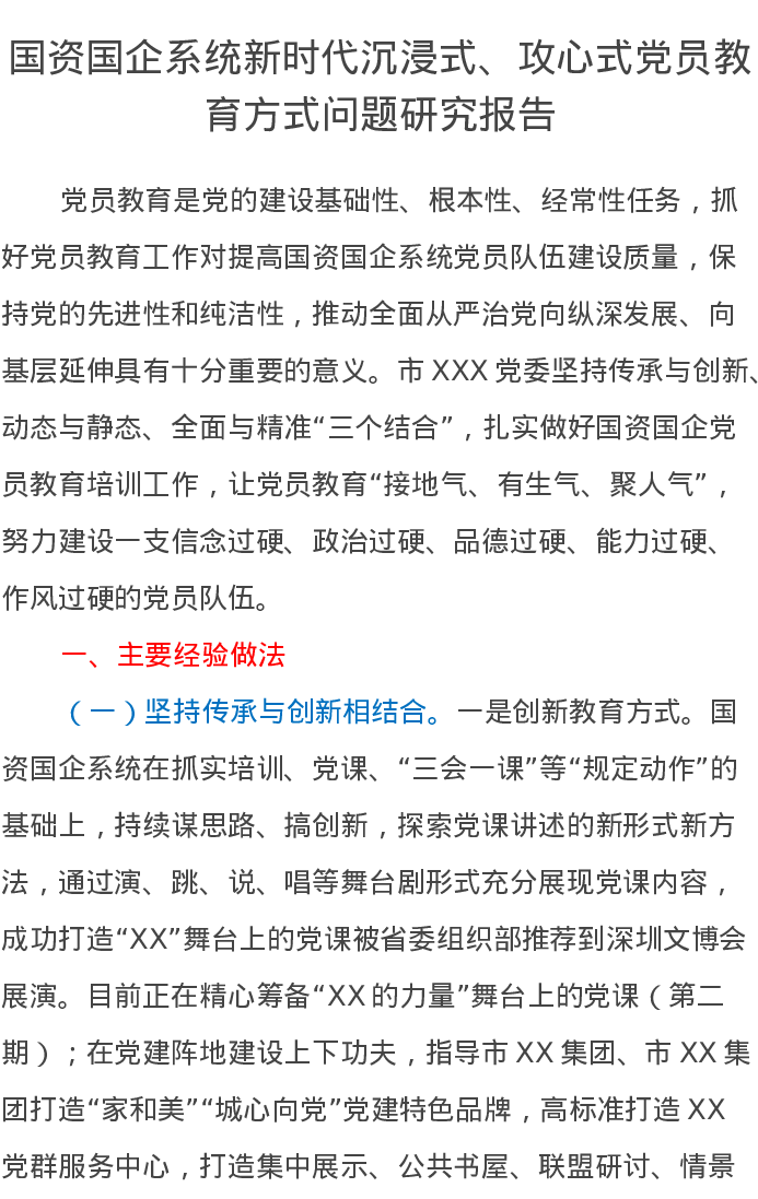 国资国企系统新时代沉浸式、攻心式党员教育方式问题研究报告