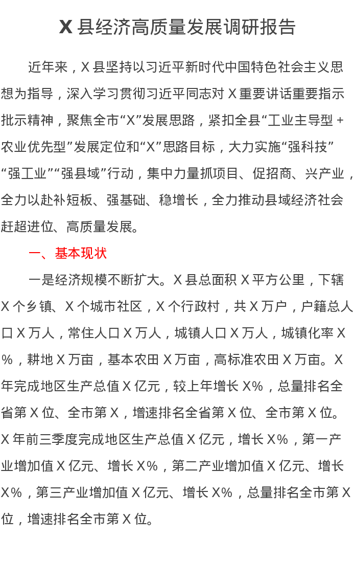 X县经济高质量发展调研报告