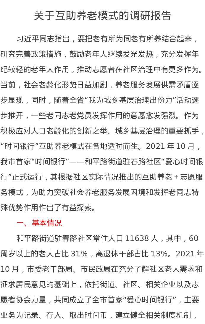 关于互助养老模式的调研报告