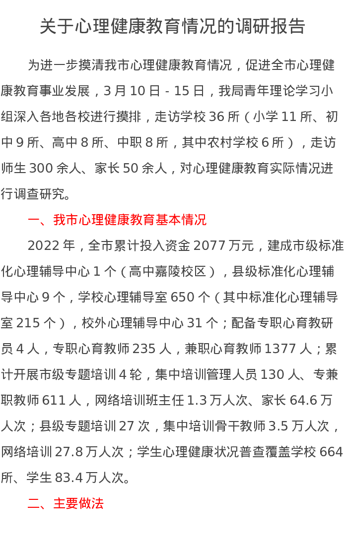 关于心理健康教育情况的调研报告