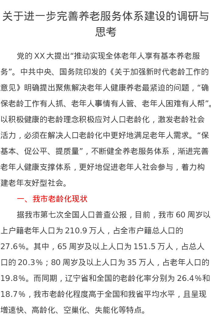 关于进一步完善养老服务体系建设的调研与思考报告