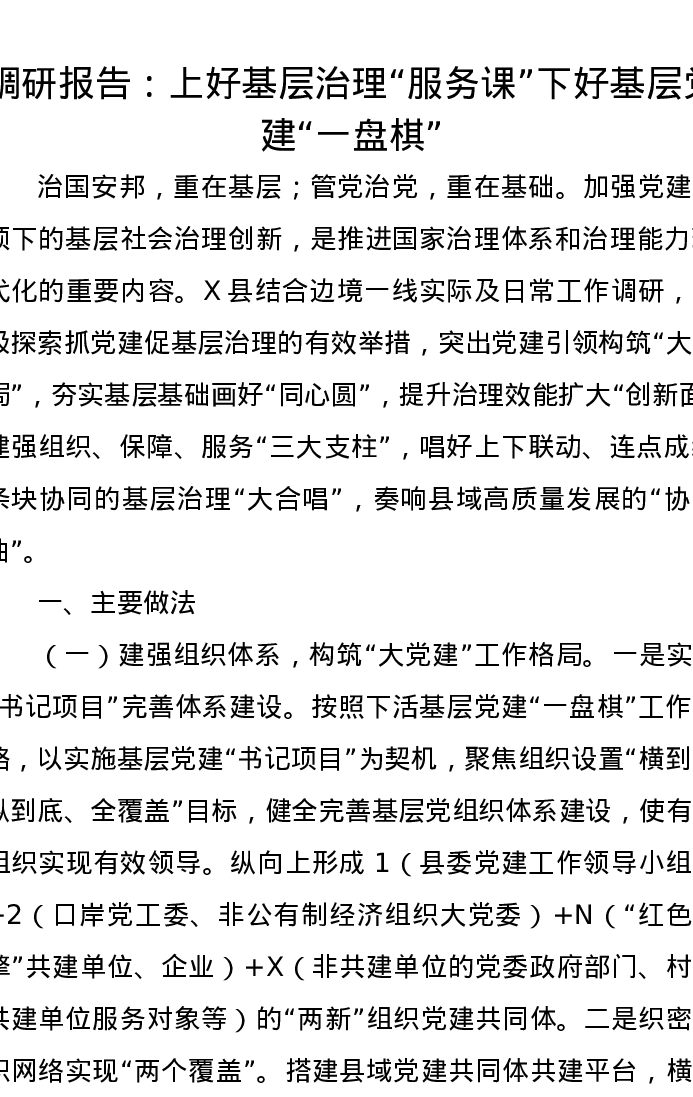 调研报告:上好基层治理“服务课”下好基层党建“一盘棋”