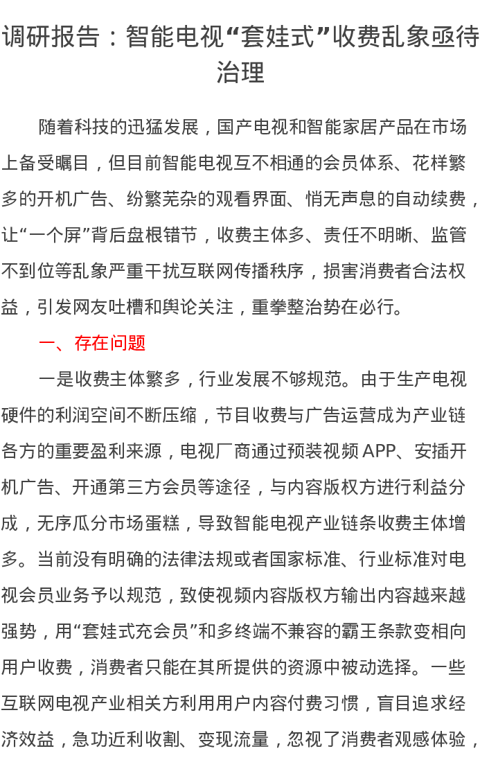 调研报告:智能电视“套娃式”收费乱象亟待治理