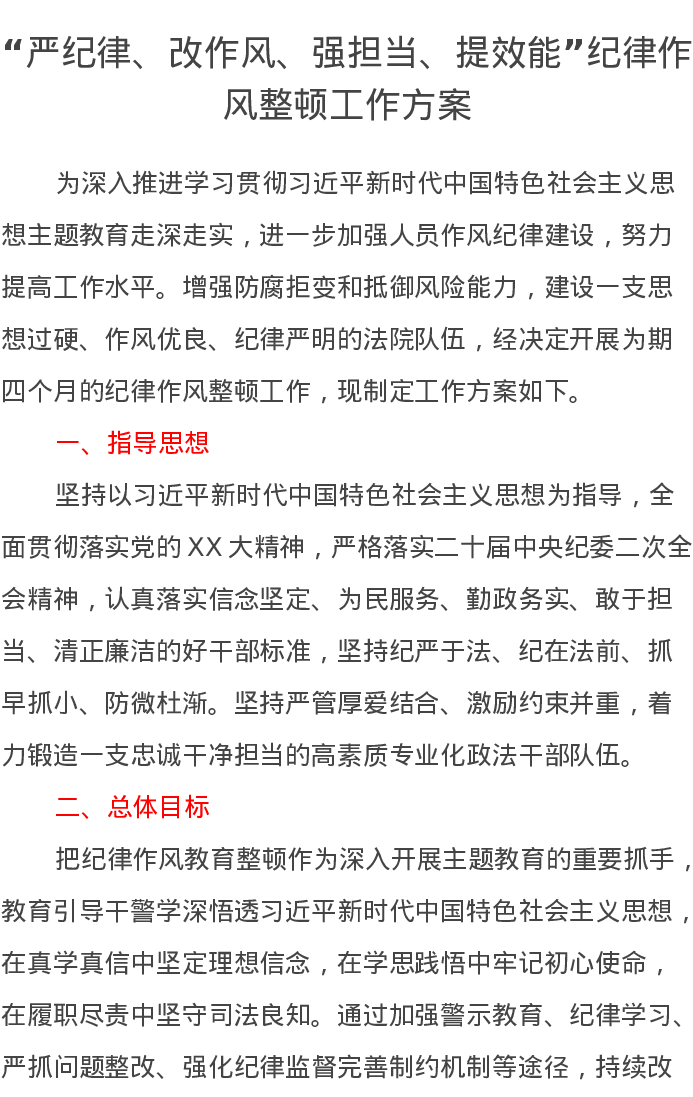 “严纪律、改作风、强担当、提效能”纪律作风整顿工作方案
