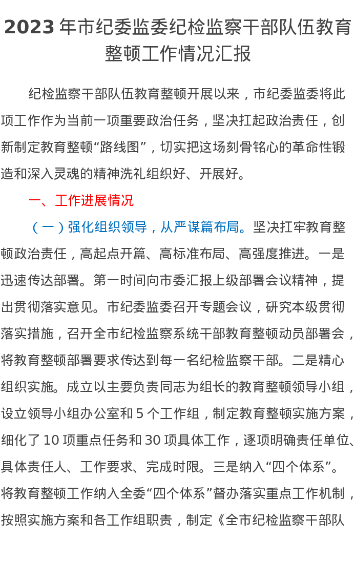 2023年市纪委监委纪检监察干部队伍教育整顿工作情况汇报