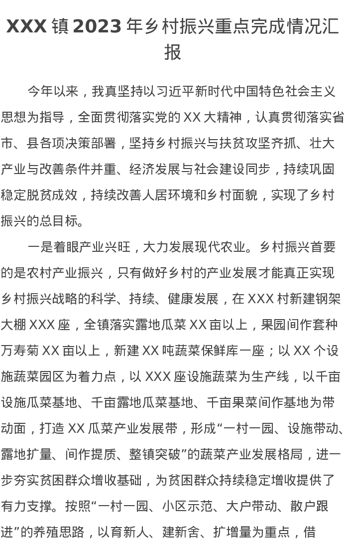 XXX镇2023年乡村振兴重点完成情况汇报