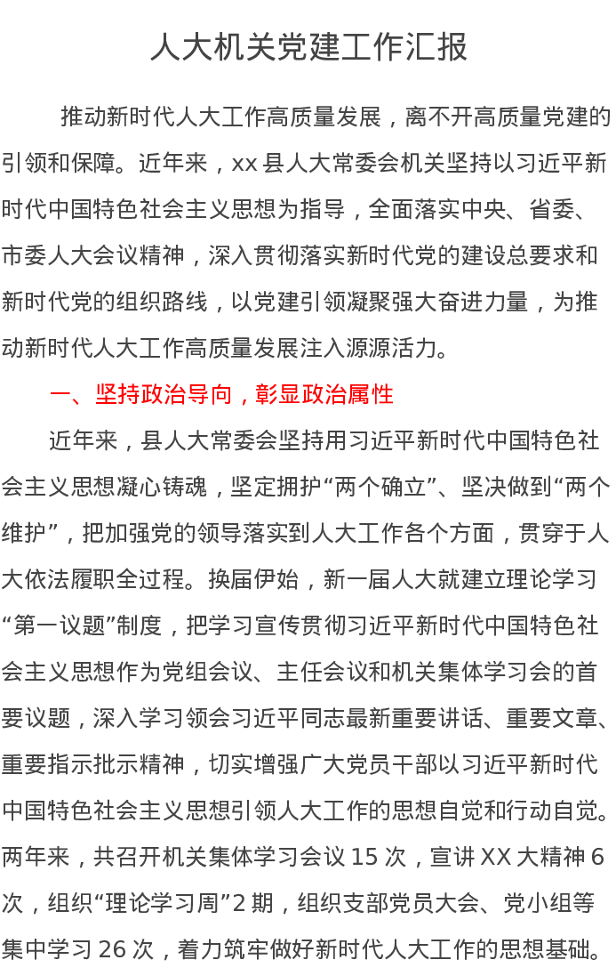 人大机关党建工作汇报