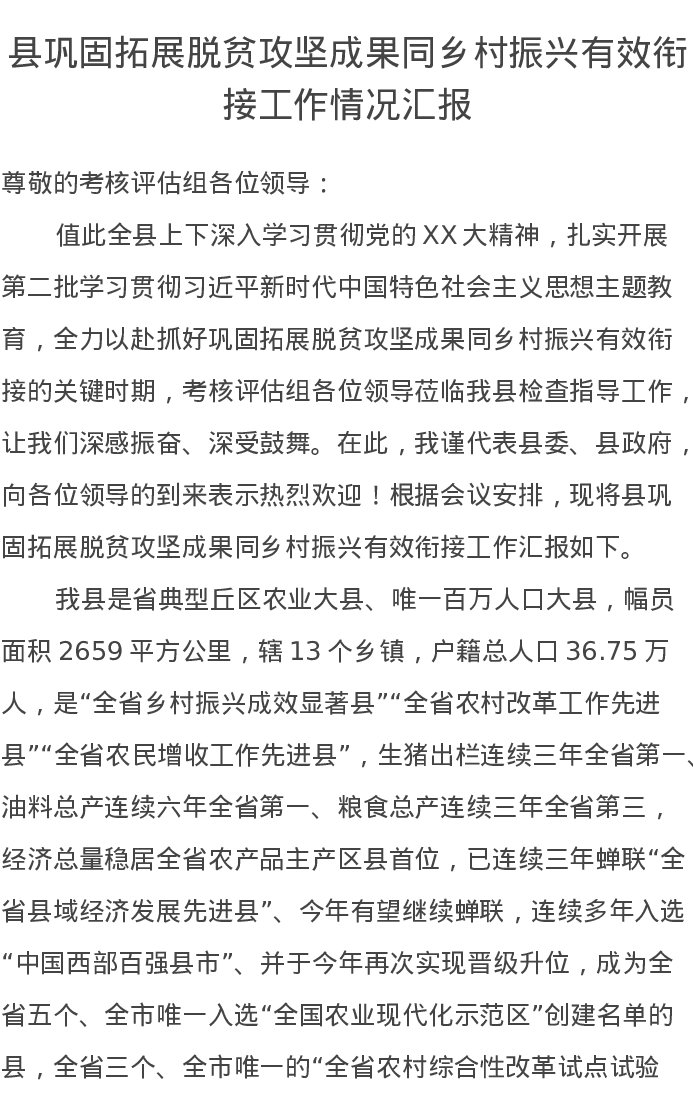 县巩固拓展脱贫攻坚成果同乡村振兴有效衔接工作情况汇报