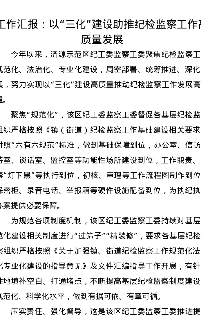 工作汇报:以“三化”建设助推纪检监察工作高质量发展