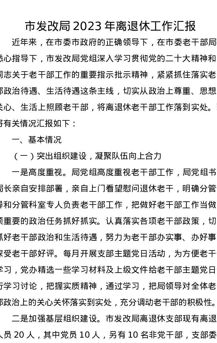 市发改局2023年离退休工作汇报