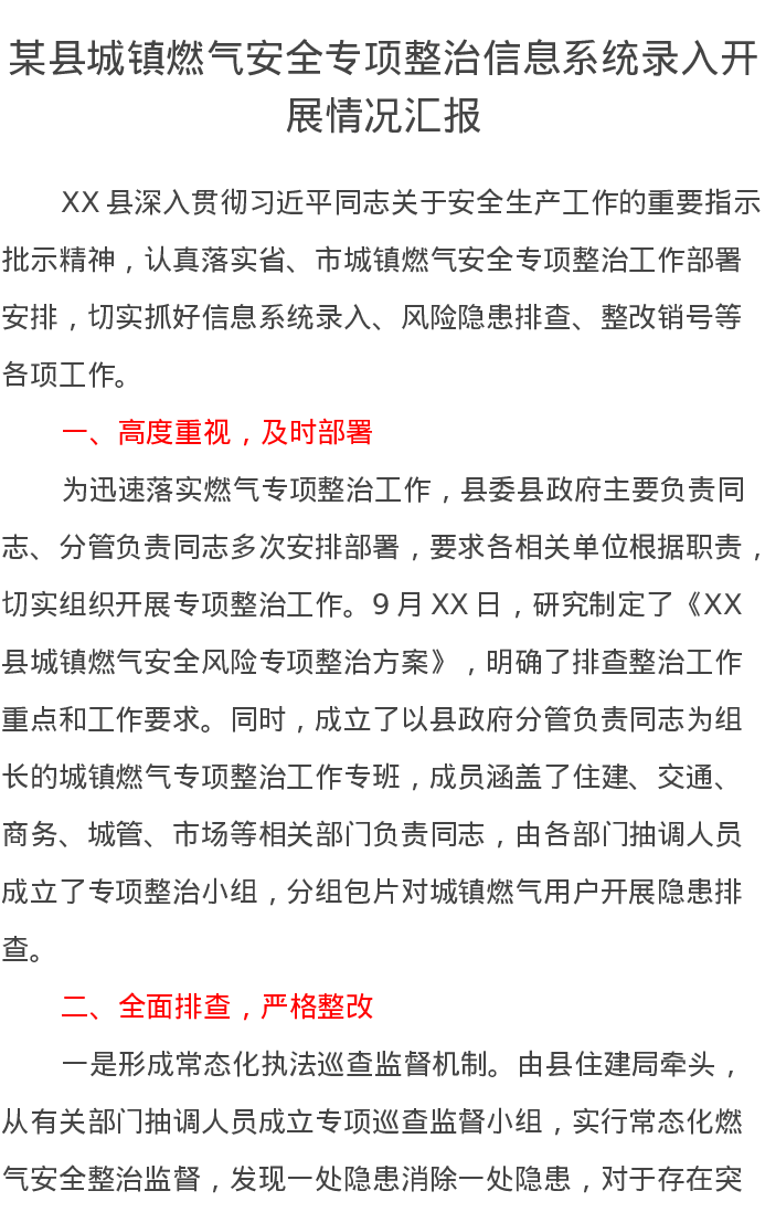 某县城镇燃气安全专项整治信息系统录入开展情况汇报