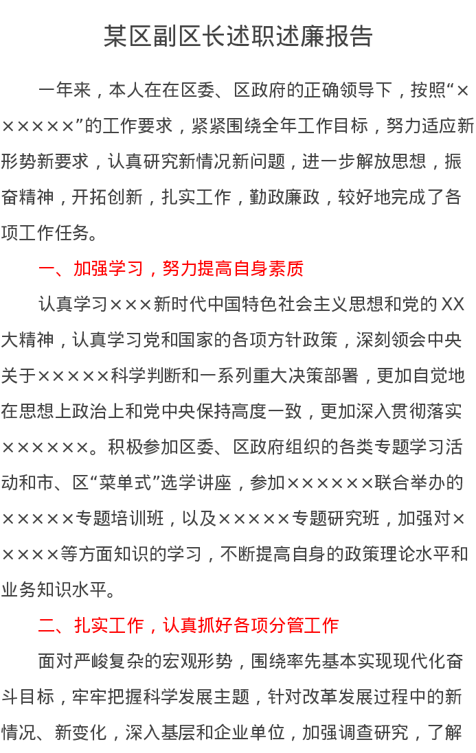 某区副区长述职述廉报告