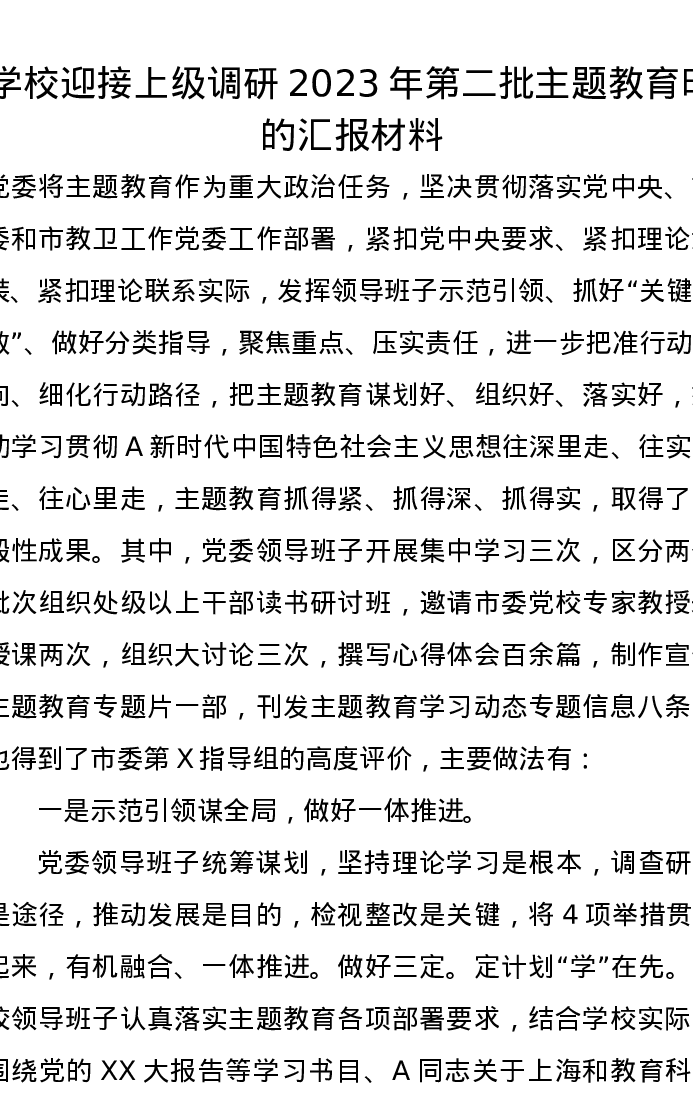 2023年XX单位第二批主题教育开展情况报告(特色社会主义思想)
