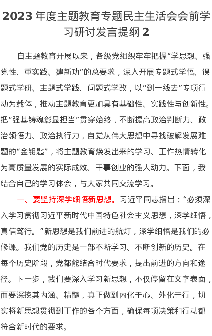 2023年度主题教育专题民主生活会会前学习研讨发言提纲2(特色社会主义思想)