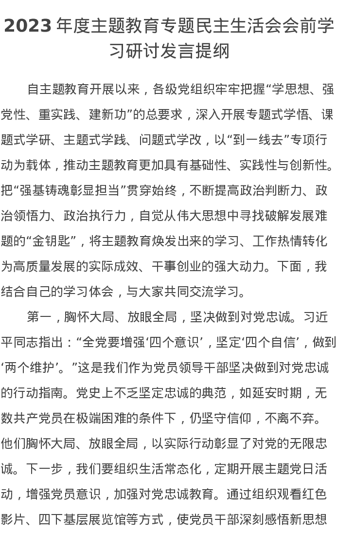 2023年度主题教育专题民主生活会会前学习研讨发言提纲3(特色社会主义思想)