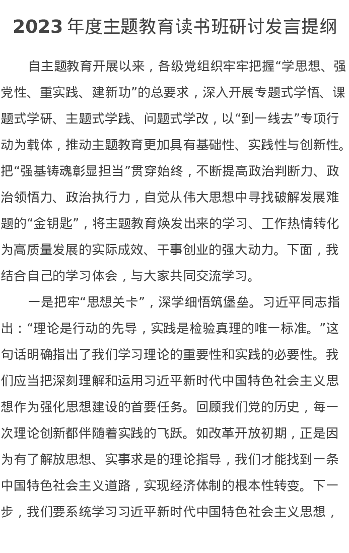 2023年度第二批主题教育读书班研讨发言提纲1(特色社会主义思想)