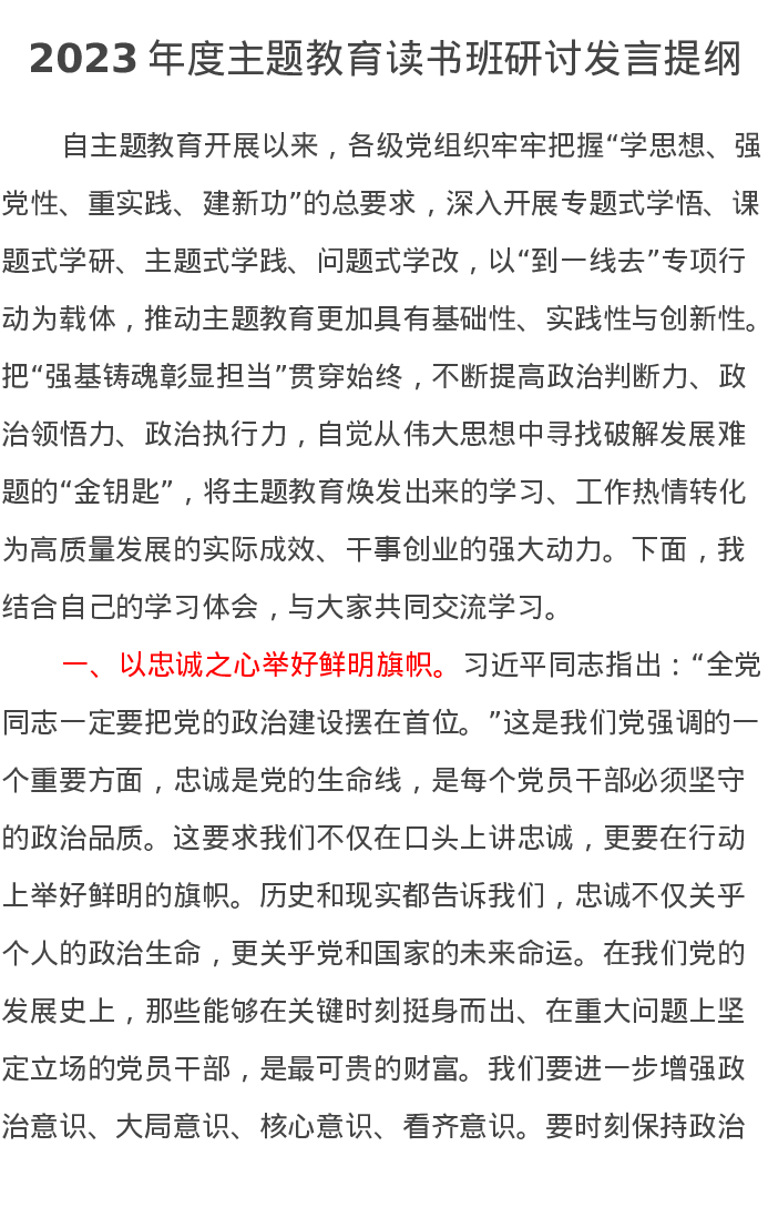 2023年度第二批主题教育读书班研讨发言提纲2(特色社会主义思想)