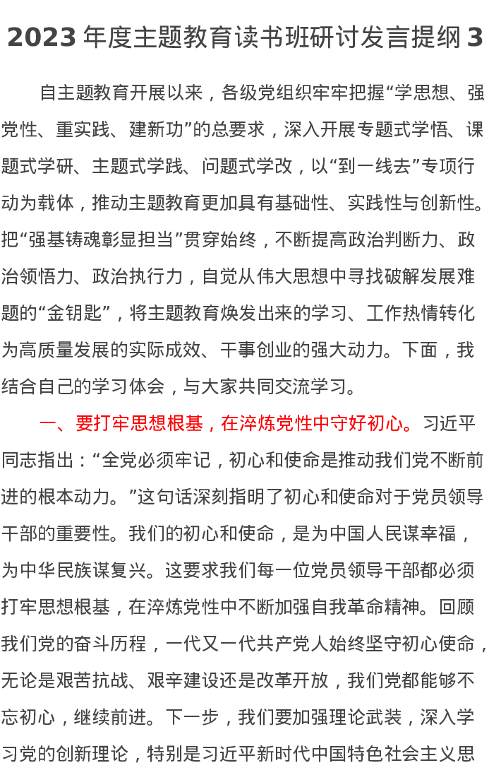 2023年度第二批主题教育读书班研讨发言提纲3(特色社会主义思想)