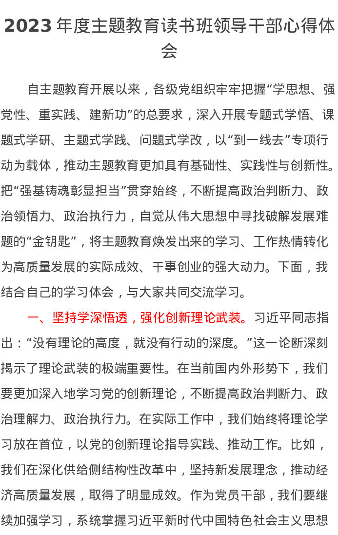 2023年度第二批主题教育读书班领导干部心得体会11(特色社会主义思想)
