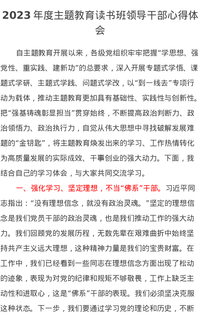 2023年度第二批主题教育读书班领导干部心得体会16(特色社会主义思想)