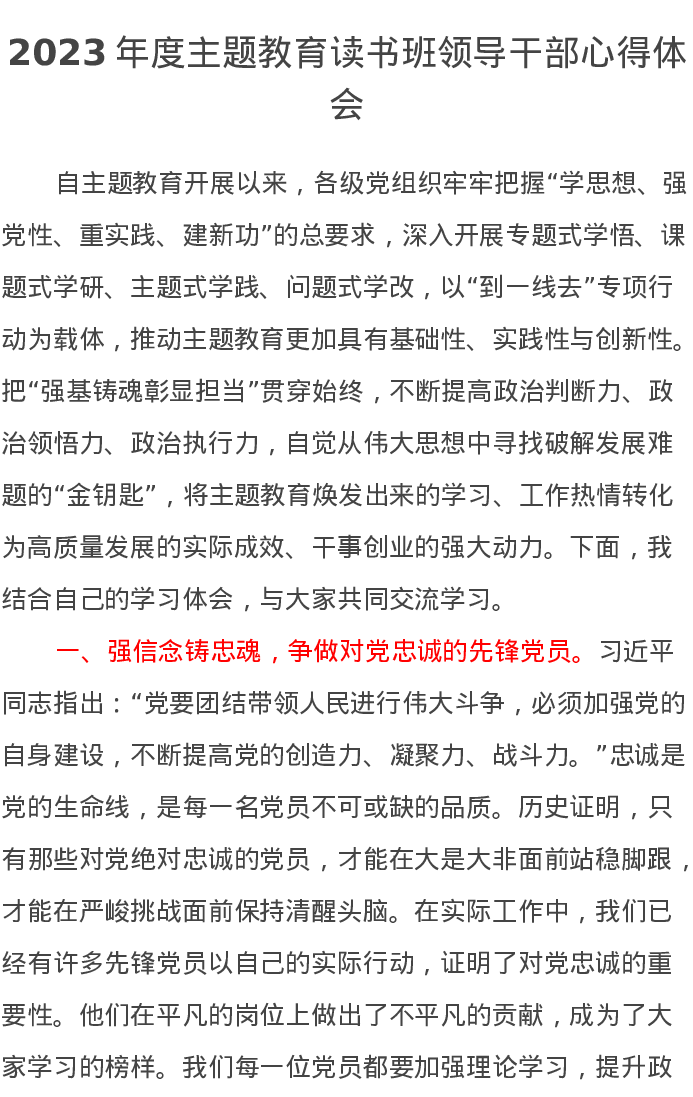 2023年度第二批主题教育读书班领导干部心得体会1(特色社会主义思想)