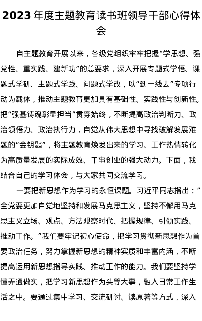 2023年度第二批主题教育读书班领导干部心得体会22(特色社会主义思想)