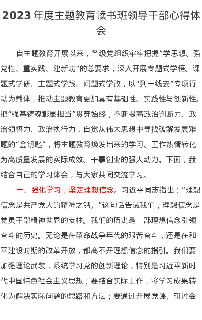 2023年度第二批主题教育读书班领导干部心得体会2(特色社会主义思想)