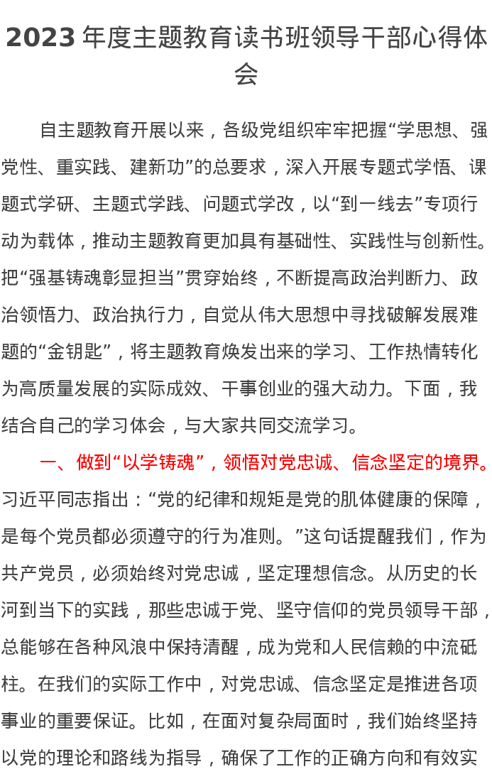 2023年度第二批主题教育读书班领导干部心得体会3(特色社会主义思想)