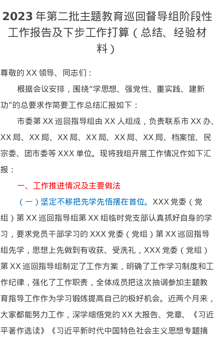 2023年第二批主题教育巡回督导组阶段性工作报告及下步工作打算(总结、经验材料)