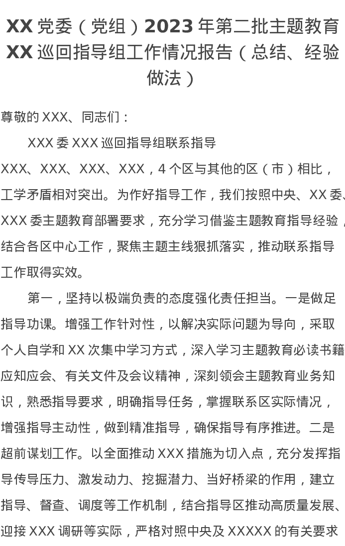 XX党委(党组)2023年第二批主题教育XX巡回指导组工作情况报告(总结、经验做法)