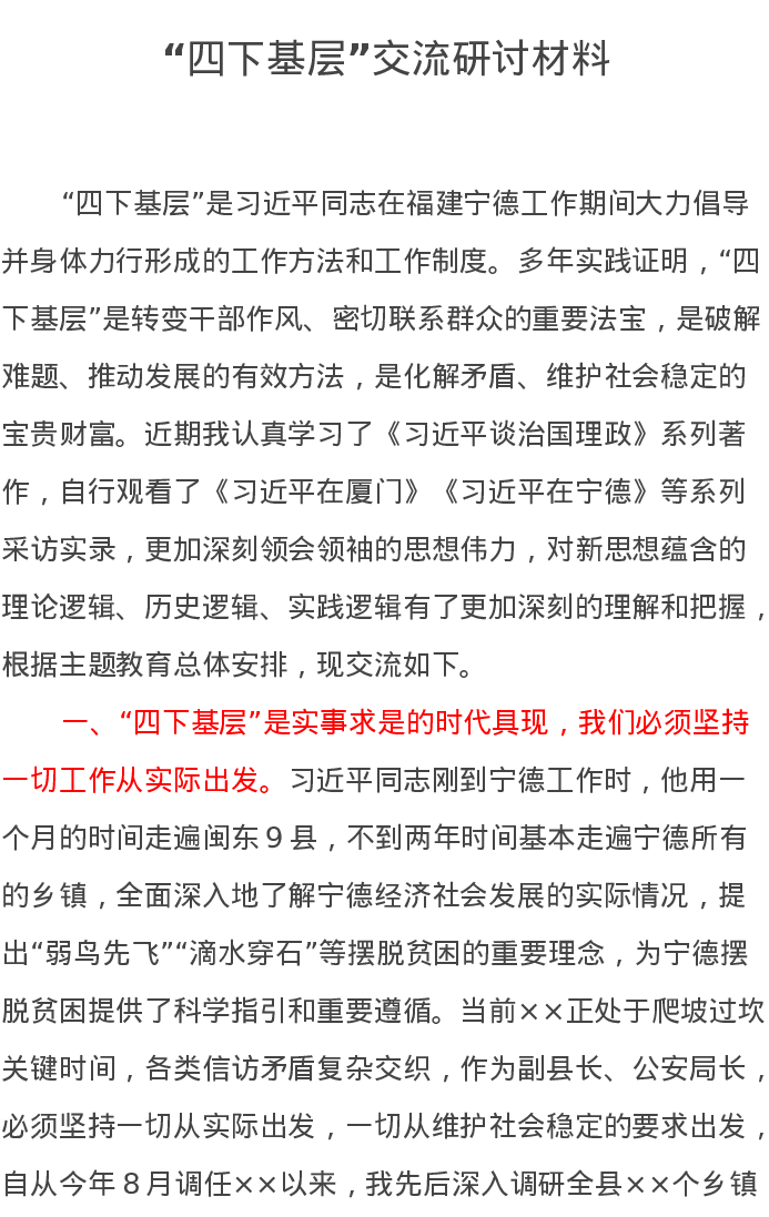 “四下基层”交流研讨发言材料(特色社会主义思想主题教育)