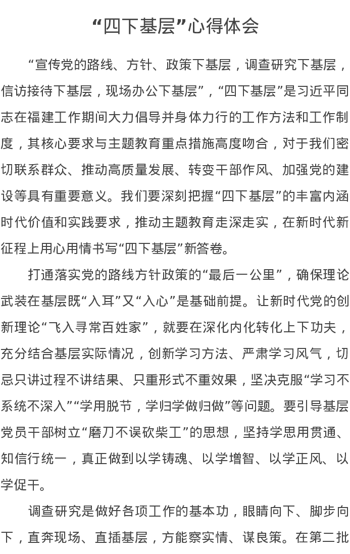 “四下基层”心得体会(第二批特色社会主义思想主题教育)