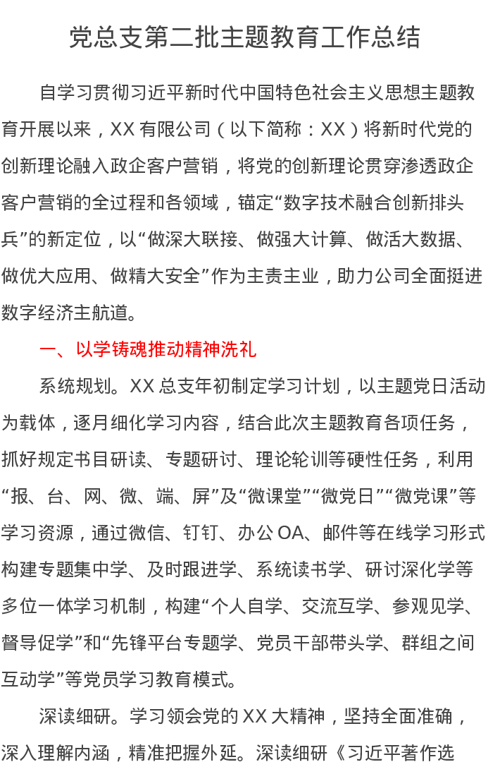 党总支第二批主题教育工作总结(特色社会主义思想)