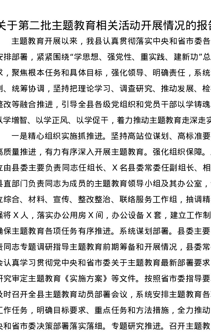 关于第二批主题教育相关活动开展情况的报告(特色社会主义思想)