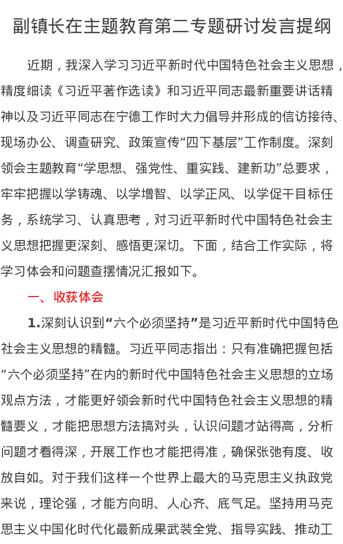 副镇长在主题教育第二专题研讨发言提纲(特色社会主义思想)