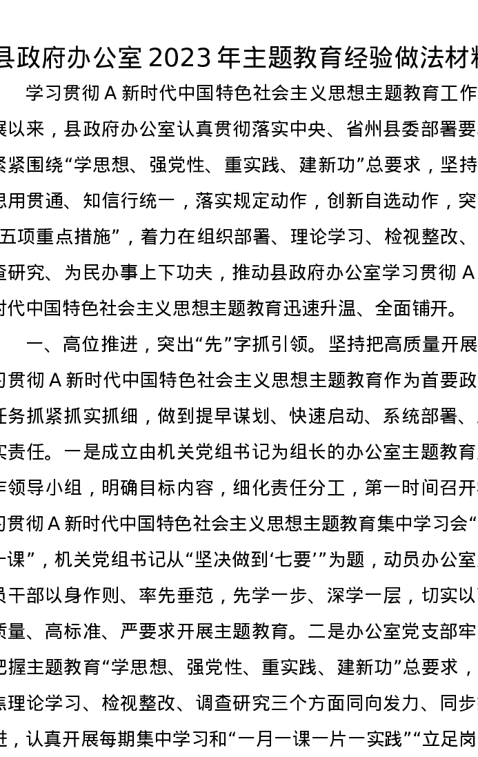 县政府办公室2023年第二批主题教育经验做法材料(特色社会主义思想)