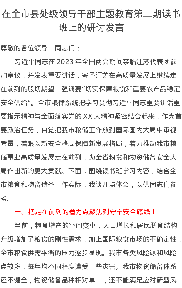 在全市县处级领导干部主题教育第二期读书班上的研讨发言(特色社会主义思想)