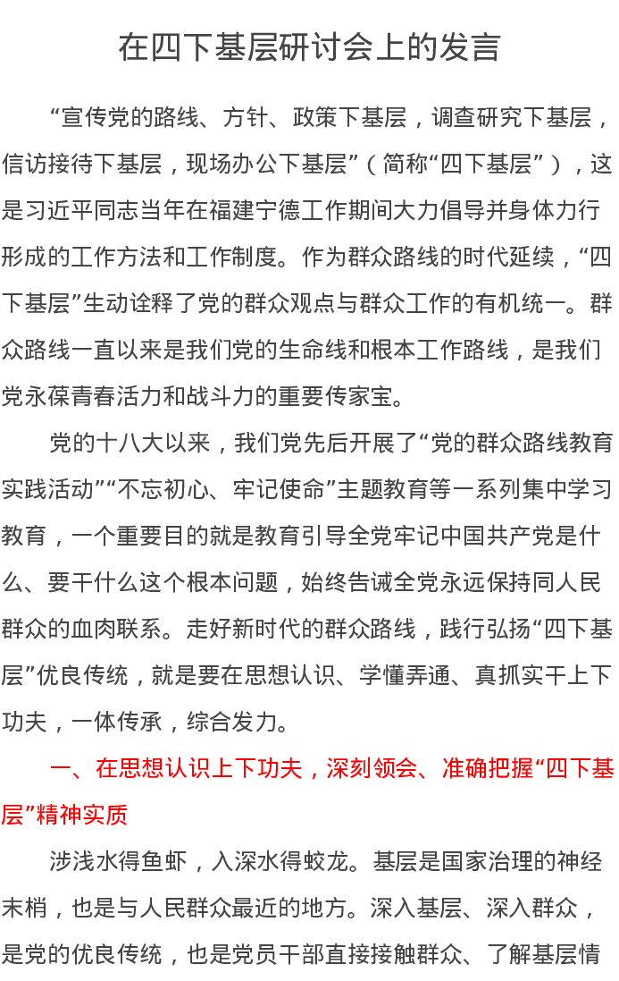在四下基层研讨会上的发言(第二批特色社会主义思想主题教育)