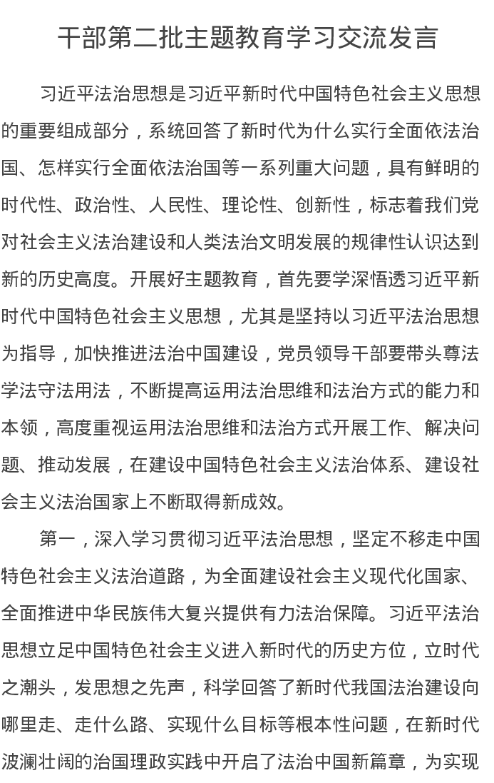 干部第二批主题教育学习交流发言(特色社会主义思想)