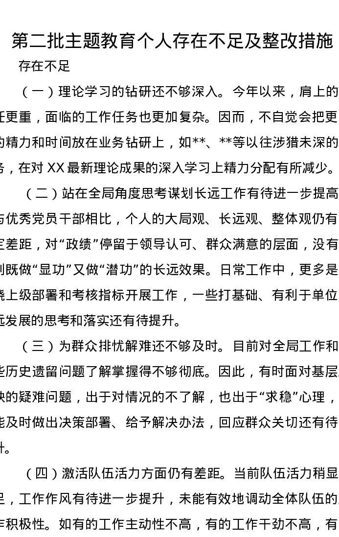 第二批主题教育个人存在不足及整改措施(特色社会主义思想)