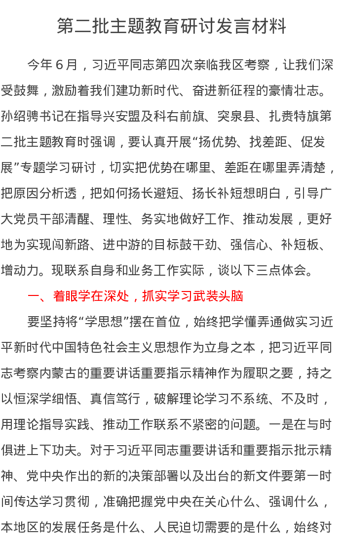 第二批主题教育研讨发言材料(特色社会主义思想)