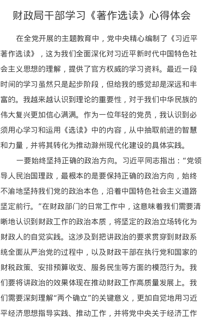 财政局干部学习《著作选读》心得体会