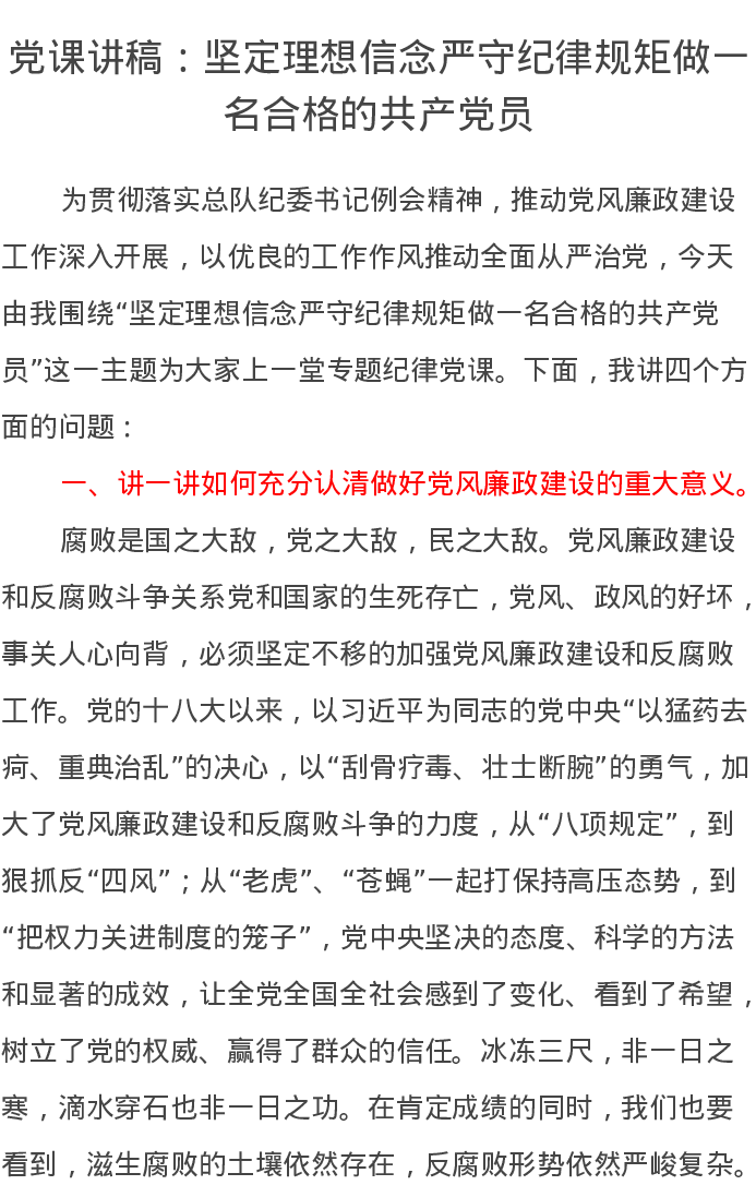 党课讲稿:坚定理想信念严守纪律规矩做一名合格的共产党员