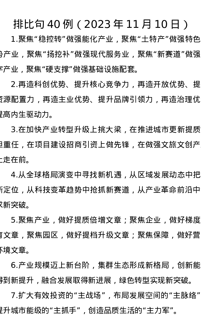 排比句40例(2023年11月10日)