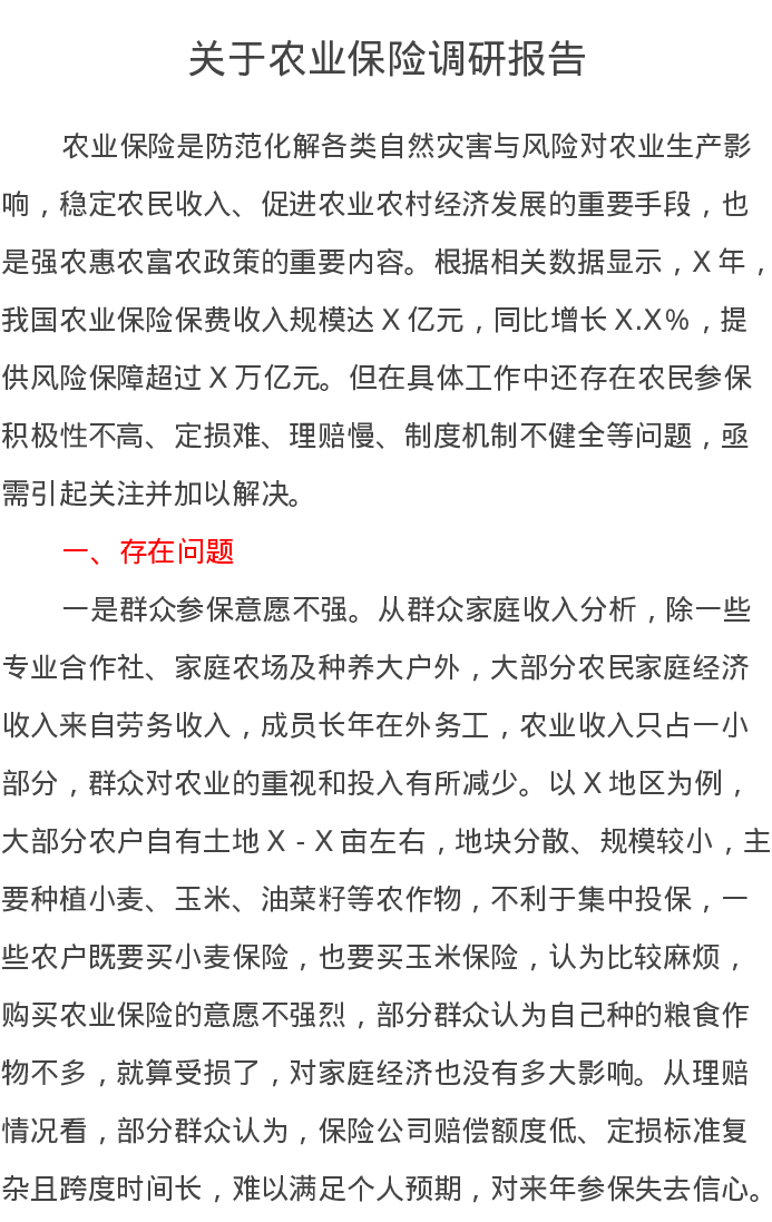 关于农业保险调研报告