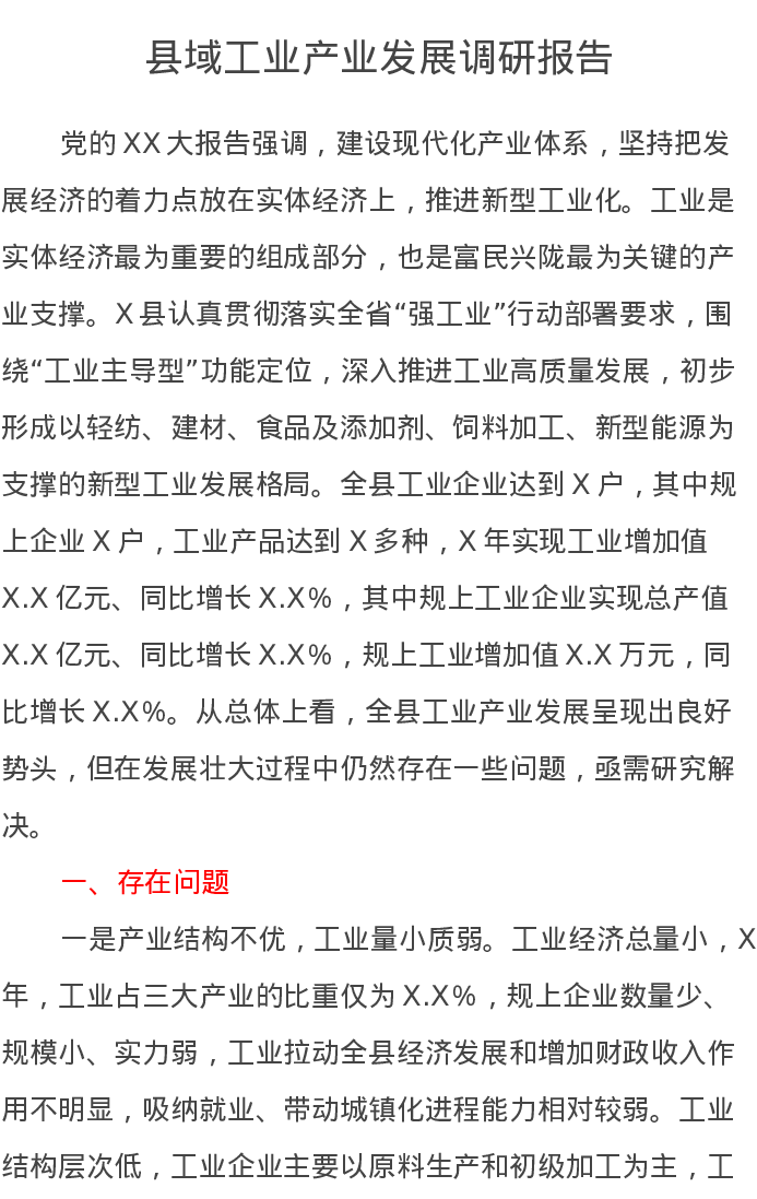 县域工业产业发展调研报告