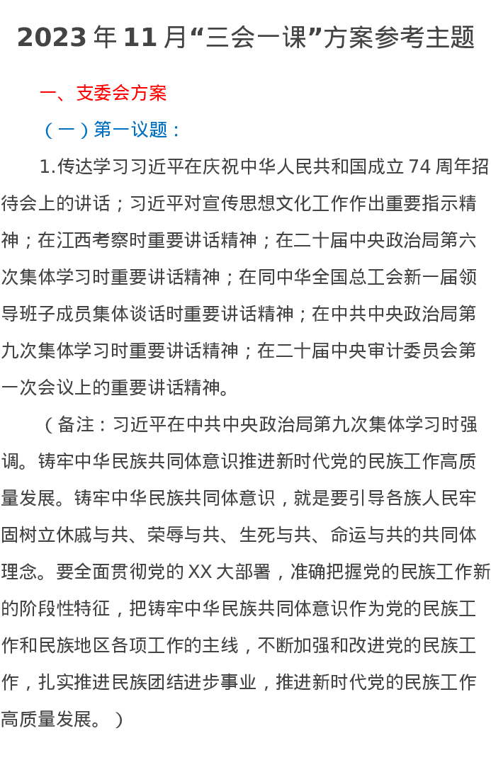 2023年11月“三会一课”方案参考主题