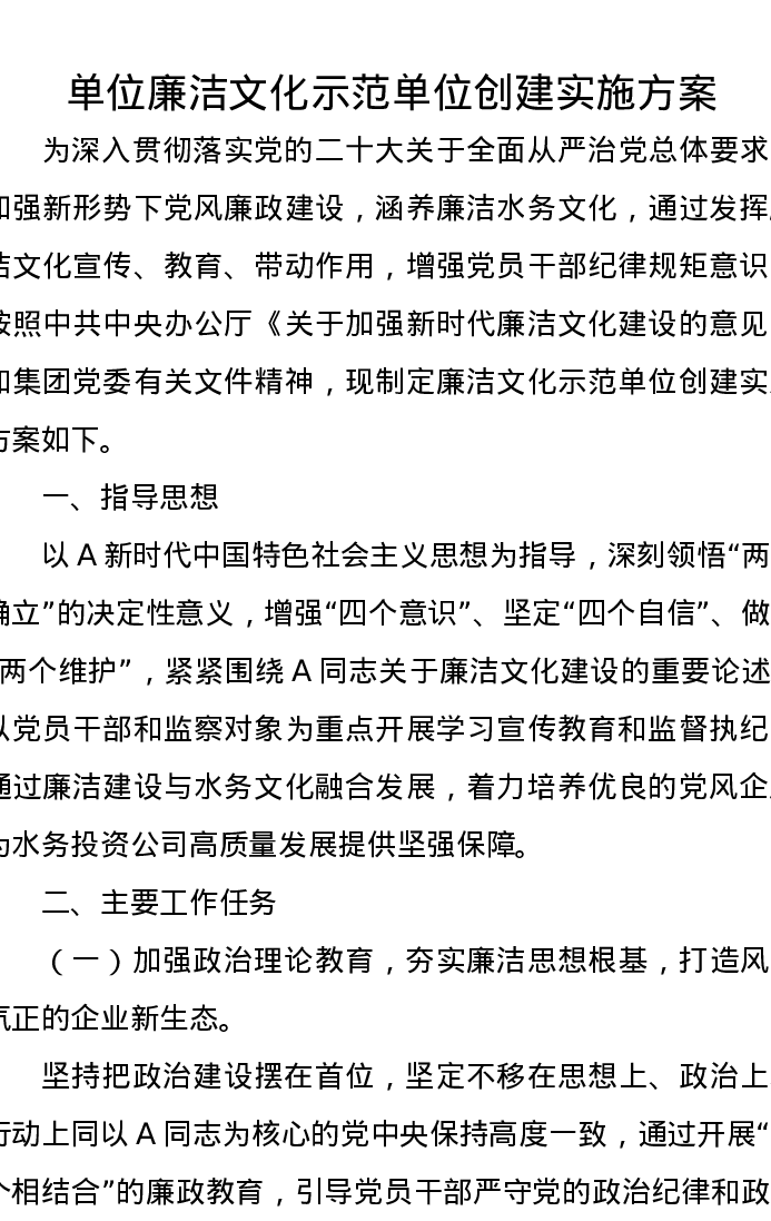 单位廉洁文化示范单位创建实施方案