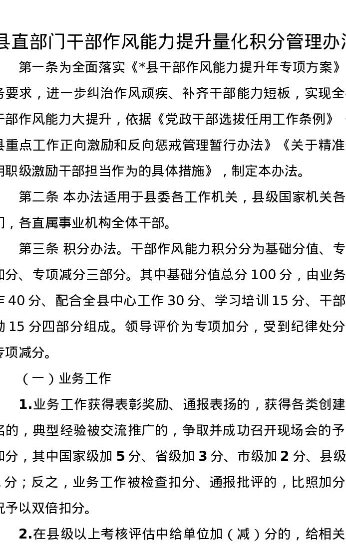 县直部门干部作风能力提升量化积分管理办法